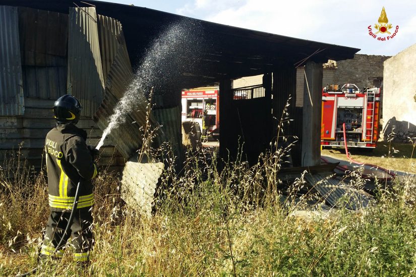 Una squadra diVigili del fuoco del comando di Campobasso composta da 7 unità con due automezzi, tra cui una autobotte, è intervenuta ieri pomeriggio in località Castellone di Bojano (CB) per un incendio di un capannone in disuso. Il personale ha provveduto allo spegnimento e alla messa in sicurezza della zona. Il rogo ha distrutto la copertura in travi di legno e lamiere. Le cause dell’incendio sono in corso di accertamento.