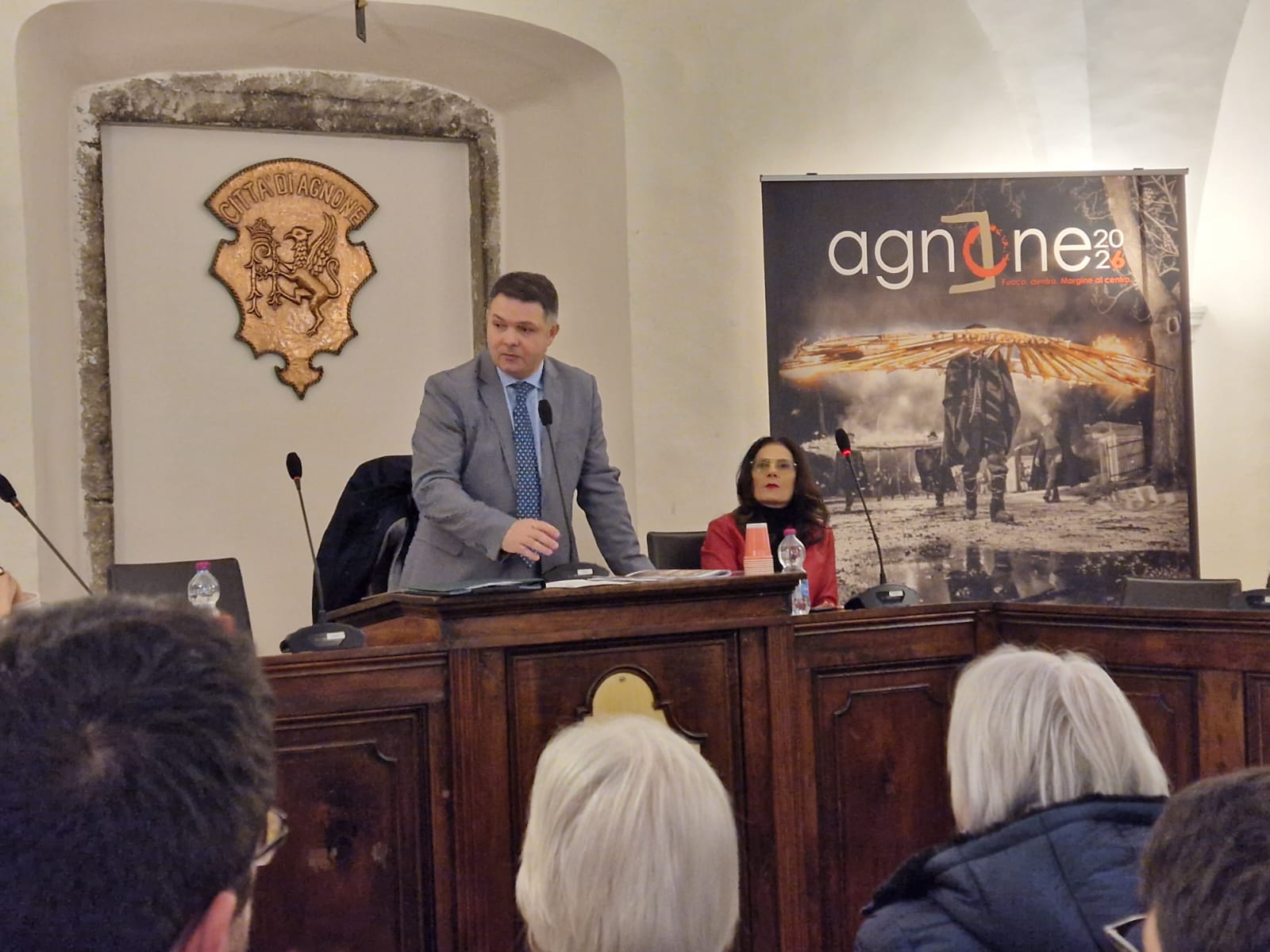 Parole e pensieri del sindco di Agnone e presidente della Provncia di Isernia, Daniele Saia durante la presentazione del dossier ‘Agnone Capitale italiana della cultura 2026’. L’appuntamento ormai si avvicina, il 4 marzo prevista l’audizione della cittadina molisana al ministero della Cultura, e allora ecco ’incontro Palazzo San Francesco con lo scopo di approfondire implementare e approfondire nel dettaglio i contenuti e le schede programmatiche del dossier dal titolo: “Fuoco, dentro. Margine al centro”.