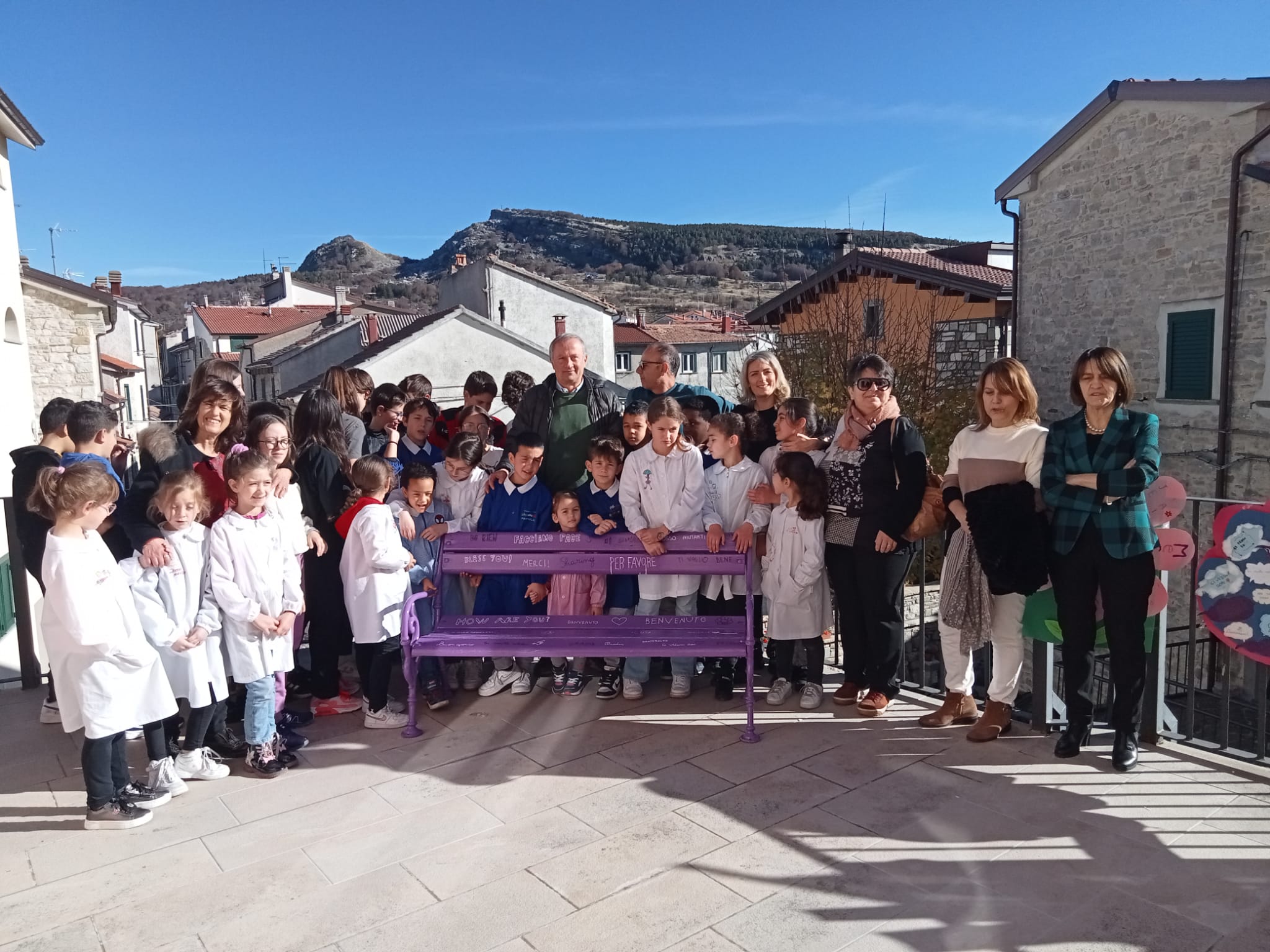 «Una panchina viola, colore simbolo della gentilezza, è stata posizionata nello spazio del balcone esterno del nostro plesso scolastico, – spiega divertito e partecipe il sindaco del “tetto” dell’Alto Molise, Candido Paglione – a testimonianza del valore che assumono i buoni comportamenti a partire proprio dai bambini e dai ragazzi». Educare e formare, obiettivi precipui dell’azienda formativa per eccellenza che è la scuola, ma sempre affiancata dalle famiglie e dalle istituzioni locali, ancor più vicine nei piccoli centri dell’entroterra appenninico.