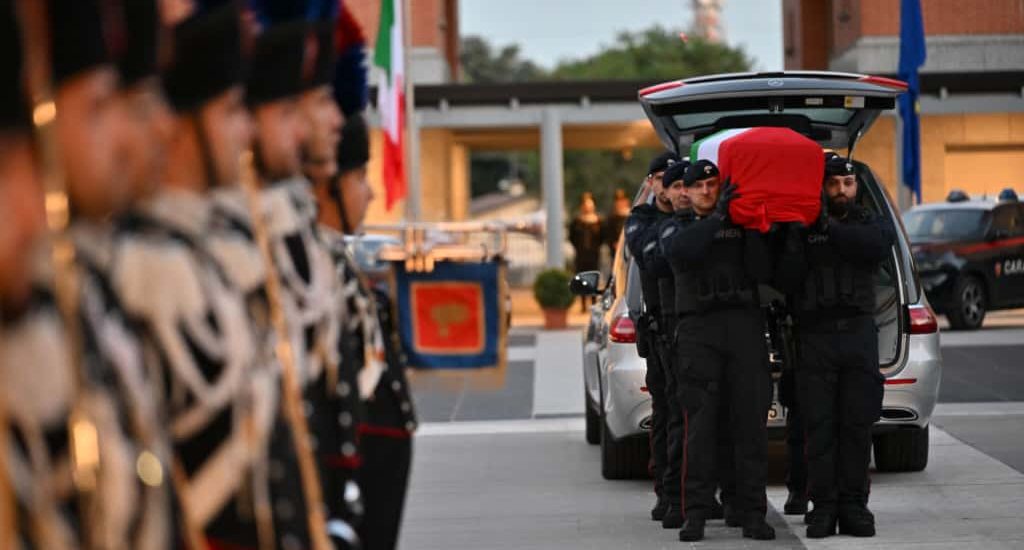 Così il Ministro Guido Crosetto in occasione dell’ultimo saluto, nel corso dei solenni funerali di Stato, al Sottotenente Marco Piffari, al Maresciallo Valerio Daprà, all’Appuntato Scelto Davide Bernardello.