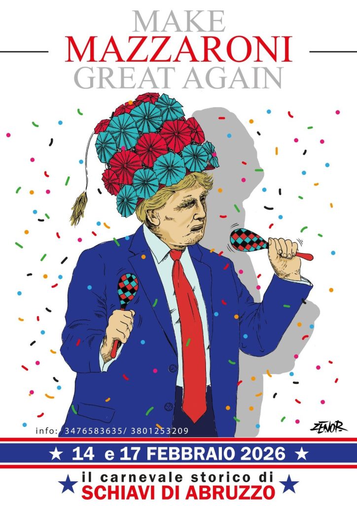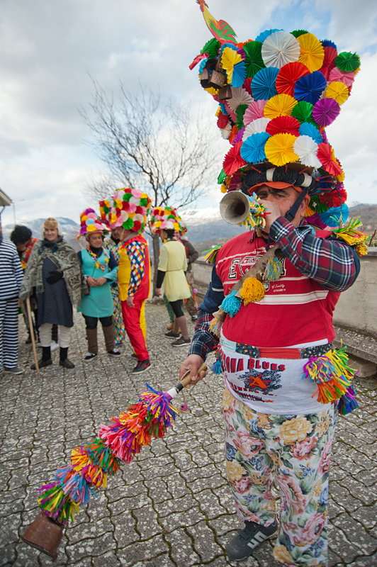 Grande festa di carnevale a Schiavi di Abruzzo. Questo paese ricco di storia, cultura e tradizioni, ogni anno a carnevale propone un’antica festa con “I Mazzaroni” (l’mazzaroun in dialetto locale). I Mazzaroni sono i giovani del paese, che indossano un caratteristico copricapo, il Cimiero (C’mir) di varie forme, ricoperto di colorati fiori di carta e nastri (zagarelle).