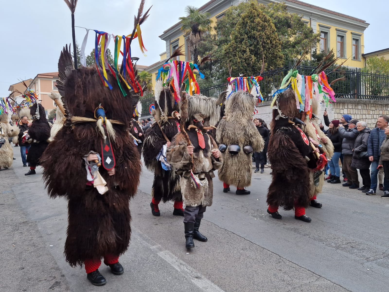 Ieri, 25 febbraio, per le strade del capoluogo, uomini e donne si sono trasformati: una metamorfosi verso le forme dell’Uomo Cervo di Castelnuovo, del Diavolo di Tufara, dell’Orso di Jelsi, del Brutto di Macchiagodena. Hanno vestito lunghe pelli di animale e corna, brandito minacciosi marotte e campanacci in un frastuono tribale fatto di urla, capriole e salti.
