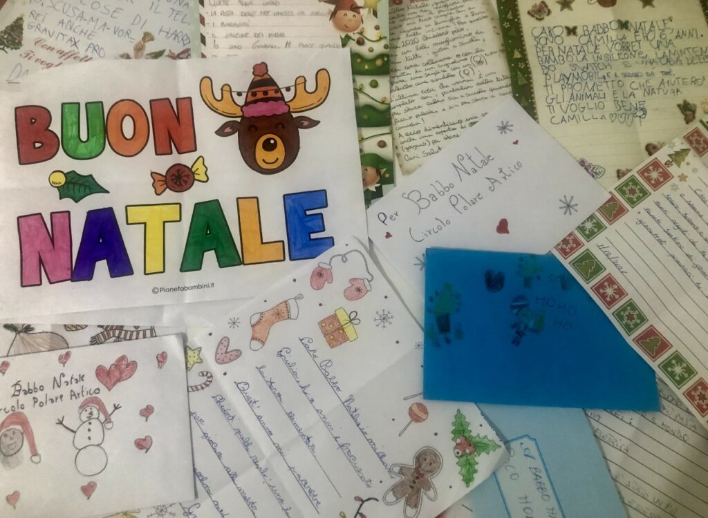 È il Covid il grande protagonista nelle missive, che oltre alle classiche liste dei regali contengono richieste anche immateriali. “Babbo Natale, tu hai il Green Pass?”, chiede Mattia, che prosegue: “Te lo chiedo perché come saprai è obbligatorio per fare quasi tutto, ma se hai problemi quando passi a casa mia quest’anno puoi lasciare i regali fuori la porta e poi ci penso io”.
