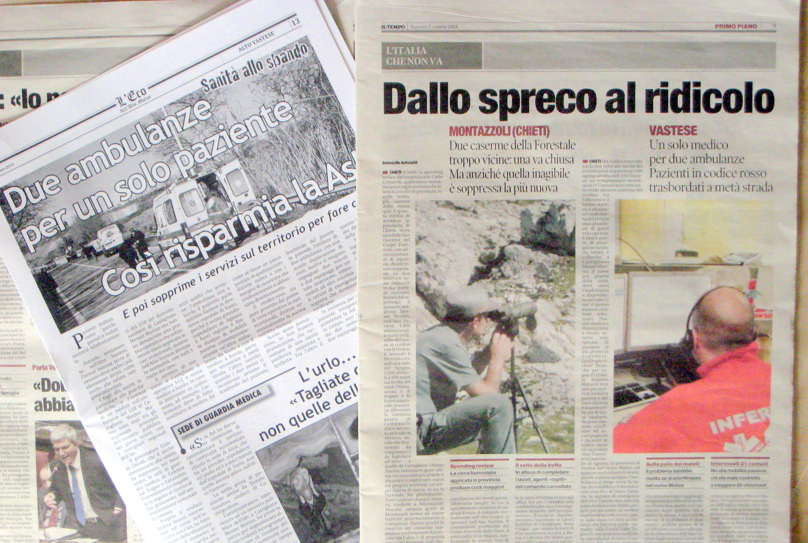 Sulle pagine nazionali del quotidiano in edicola oggi, Antonello Antonelli, prendendo spunto proprio dai nostri articoli apparsi sia on line che sul numero di febbraio del mensile, affronta i due casi al limite del ridicolo della doppia ambulanza per un solo paziente, e della soppressione della stazione della Forestale di Castiglione Messer Marino.