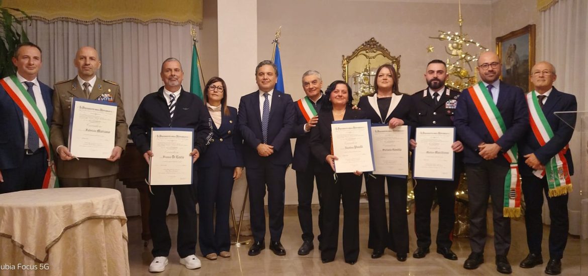 Nel pomeriggio di ieri, presso il Salone di Rappresentanza della Prefettura-U.t.G. di Isernia, il Prefetto di Isernia, Giuseppe Montella ha consegnato le onorificenze di Cavaliere dell’Ordine “Al Merito della Repubblica Italiana”, conferite dal Capo dello Stato, Sergio Mattarella, con decreto del 2 giugno 2025, ai seguenti cittadini del territorio, che si sono particolarmente distinti verso la Nazione nell’esercizio di pubbliche cariche, nelle attività a fini sociali, filantropici e umanitari, e per lunghi e segnalati servizi nelle carriere civili e militari: