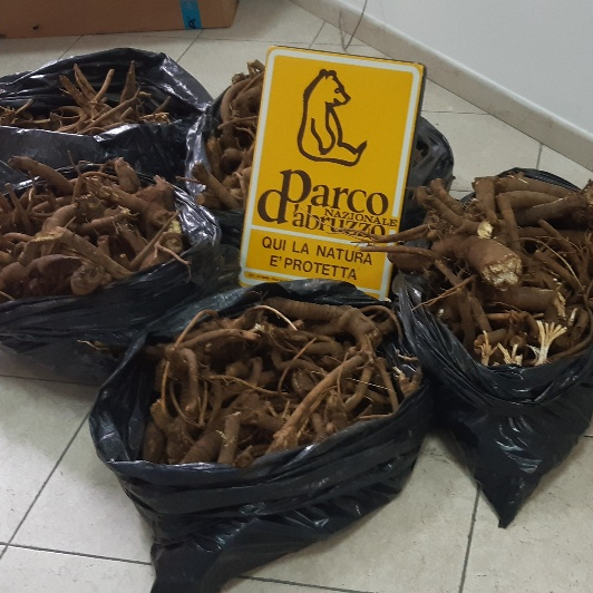 Nei giorni scorsi, durante le ordinarie attività di sorveglianza del territorio, i Guardiaparco del Reparto di San Biagio Saracinisco, hanno individuato tre persone intente a trasportare cinque voluminosi sacchi neri in un’area di alta montagna del versante laziale del Parco Nazionale d’Abruzzo Lazio e Molise, area ricompresa anche nella Zona Speciale di Conservazione “Cime massiccio della Meta – IT 6050018”, ovvero uno dei siti della Rete Natura 2000. I Guardiaparco, procedendo al controllo, hanno potuto riscontrare nei sacchi di polietilene la presenza di radici di Genziana (Gentiana Lutea), appena estirpata, che al controllo successivo sono risultati essere ben 50 kg, ovvero un quantitativo esagerato, e certamente non destinato al solo “uso familiare” visto che per il famoso liquore a base di questa radice ne bastano poche decine di grammi.