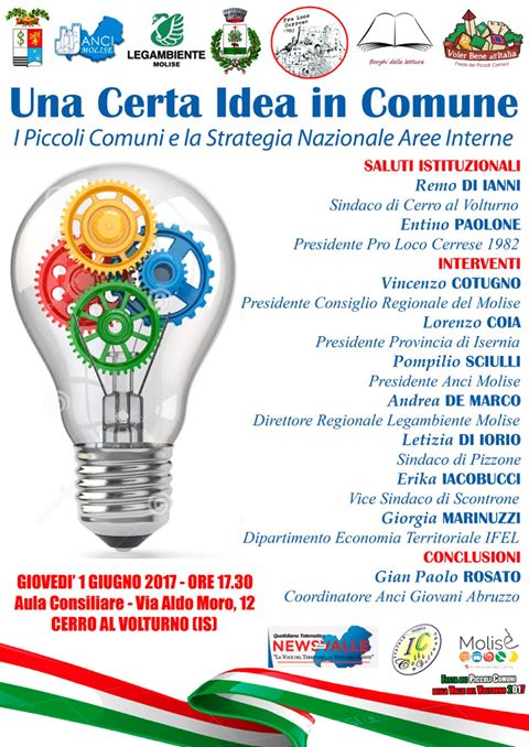la volta di Cerro al Volturno Grazie alla collaborazione tra Anci Molise, Comune di Cerro al Volturno e Pro Loco Cerrese 1982 si svolgerà il convegno dal titolo “Una Certa Idea in Comune, i Piccoli Comuni e la strategia nazionale aree interne”.