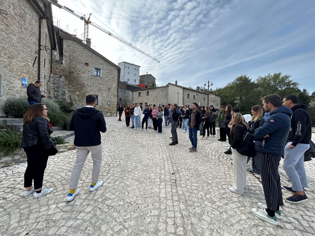 L’ingegnere Rosita Levrieri, responsabile dell’ufficio unico del progetto di rigenerazione del Comune, ha esposto loro la mission, gli obiettivi e le attività previste dal progetto del Bando Borghi; l’architetto Enrico Ricci ha illustrato le modalità di attuazione degli interventi infrastrutturali mediante lo strumento della STU – Società di Trasformazione Urbana e l’importanza della realizzazione di progetti cantierabili e della vicinanza con le maestranze previste in cantiere. Gli studenti hanno dialogato, inoltre, con l’architetto Nicola Di Biase, progettista della componente privata della Vello SPA che si è soffermato sugli investimenti dell’albergo diffuso Borgotufi, dove sono attualmente in fase di realizzazione alcuni lavori finanziati dal CIS – Contratti Istituzionali di Sviluppo, per la creazione della Casa della Conoscenza, che ospiterà una biblioteca e spazi per l’incontro degli abitanti. Diverse le esperienze che i ragazzi hanno potuto vivere sul territorio, dalla partecipazione ai rilievi nei cantieri aperti a Borgotufi, alle attività a contatto con le realtà agricole ed imprenditoriali che negli ultimi anni sono state motore di rigenerazione di Castel del Giudice, come la visita all’azienda agricola Melise, che coltiva mele biologiche ed altri prodotti di agricoltura sostenibile, al birrificio Malto Lento, all’Apiario di Comunità, al Centro Studi Casa Frezza.