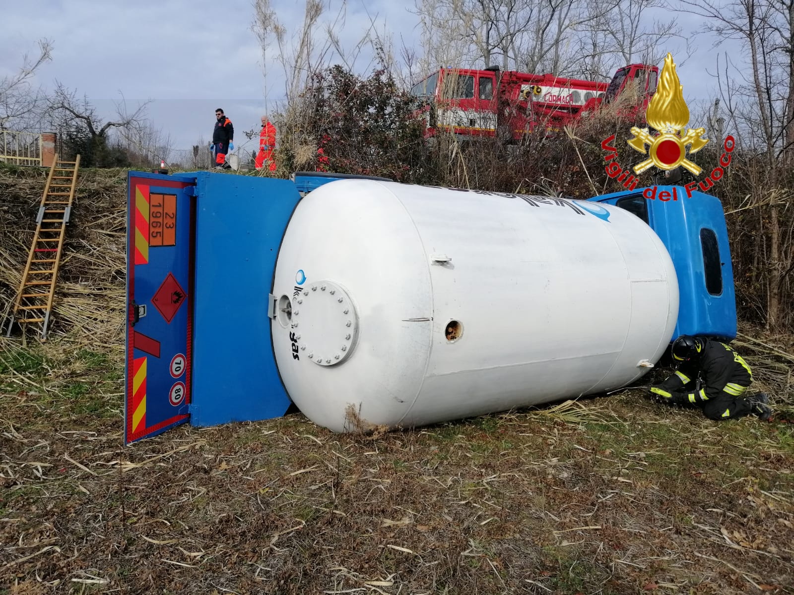 • Cisterna di Gpl si ribalta sulla provinciale, intervento dei Vigili del fuoco
