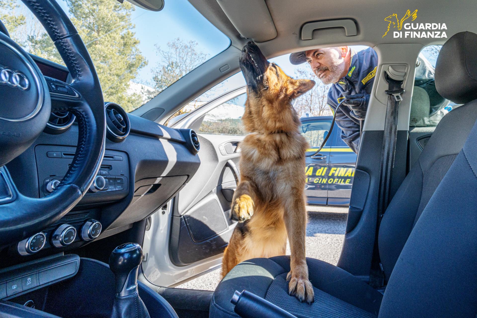 Sin da subito, il soggetto ha mostrato segni di nervosismo che hanno indotto i finanzieri del Nucleo di Polizia Economico-Finanziaria ad effettuare un controllo più approfondito, reso possibile anche grazie all’intervento di un’unità cinofila del locale Gruppo della Guardia di Finanza, che ha palesato un forte interesse per la persona che era alla guida, facendo insospettire ancora di più i militari operanti.