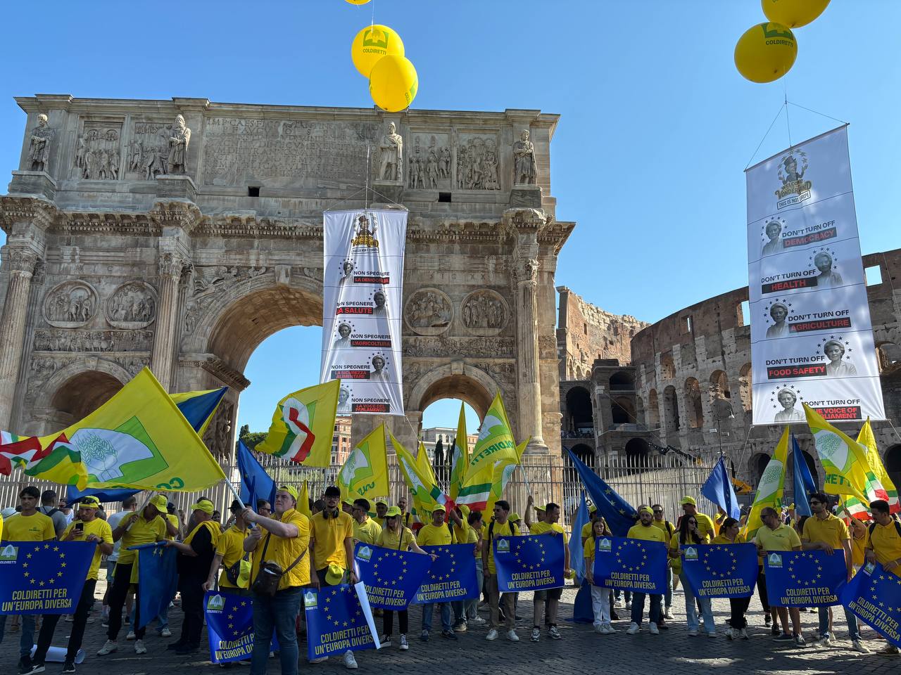 Gli striscioni, oltre ad essere stati esposti dal palazzo di Farm Europe a Bruxelles, a pochi passi da quello di Berlaymont sede della Commissione Europea, sono stati alzati in cielo anche in alcuni luoghi iconici di Roma come il Colosseo, Fontana di Trevi e Piazza Navona, e con valore anche politico come il Senato.