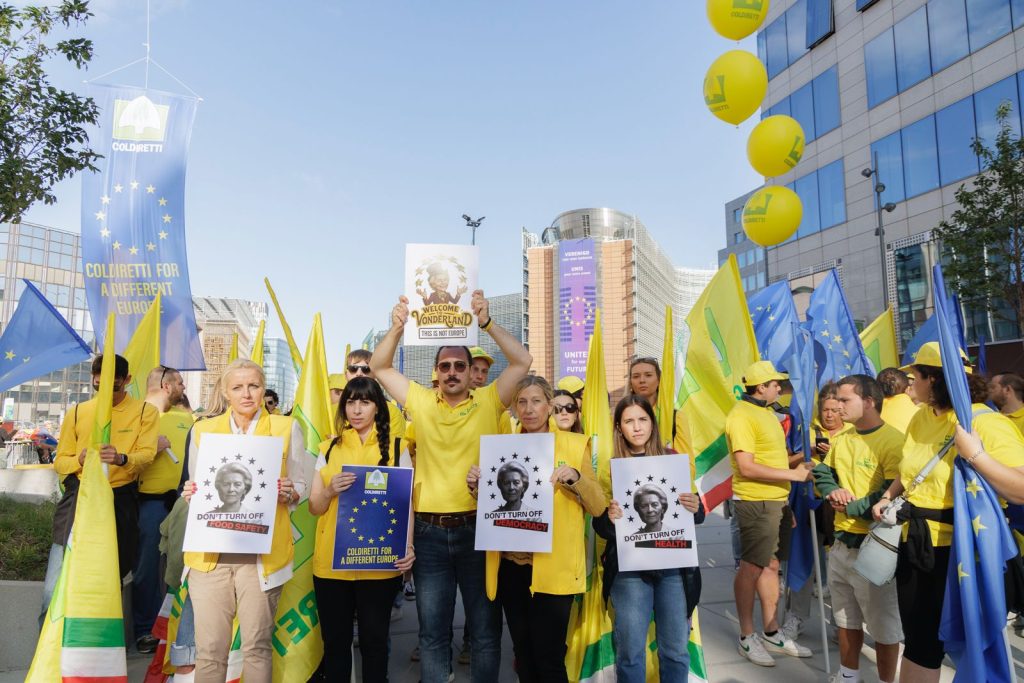 L’iniziativa ha coinvolto centinaia di giovani agricoltori di Coldiretti, che hanno esposto striscioni raffiguranti Ursula Von der Leyen nella sua “Vonderland” appunto, accompagnati da messaggi chiari come: “non spegnere la democrazia!”, “non spegnere la salute” “non spegnere l’agricoltura” sempre più minacciata da una Commissione Europea che ignora sistematicamente le scelte del Parlamento europeo e agisce senza confronto democratico.