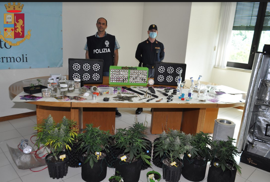 Nei giorni scorsi, nell’ambito di attività volta al contrasto del fenomeno di spaccio di droga, personale del Commissariato di Polizia di Termoli, con il Coordinamento della Procura della Repubblica presso il Tribunale di Larino e con il supporto di unità cinofile della Polizia di Stato e del Reparto Volo di Pescara, ha tratto in arresto per coltivazione e produzione di sostanze stupefacenti un uomo di 38 anni, con precedenti per detenzione illegale di armi, residente nel Comune di Guardialfiera.