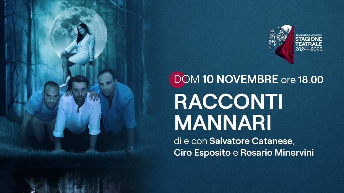 Domenica 10 novembre alle 18:00 sul palco del Teatro Italo Argentino di Agnone andrà in scena Racconti Mannari, di e con Salvatore Catanese, Ciro Esposito e Rosario Minervini e con la partecipazione di Martina Sionne. Lo spettacolo aprirà la stagione teatrale 2024/25 del teatro agnonese, promossa dall’Associazione Amici del Teatro Italo Argentino con il cofinanziamento FSC – Fondo Sviluppo e Coesione della Regione Molise.