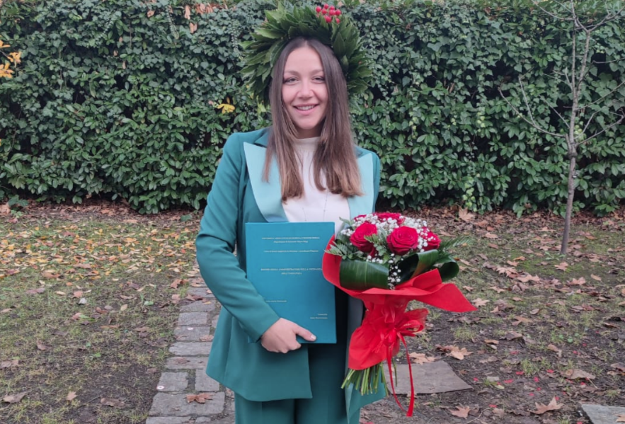 Confetti rossi per Anna Marcovecchio neo dottoressa in Direzione e consulenza di impresa