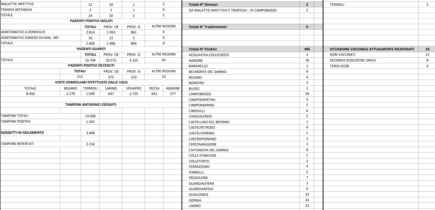 Contagi, picco massimo ancora ad Agnone: 76 nuovi positivi su 287 tamponi processati