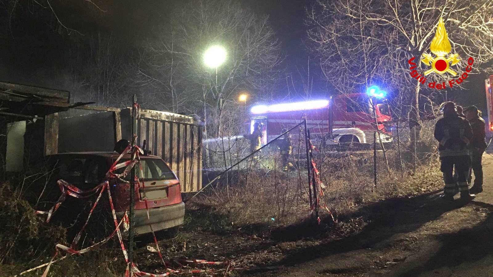 • Container e baracca in fiamme, Vigili del fuoco domano le fiamme