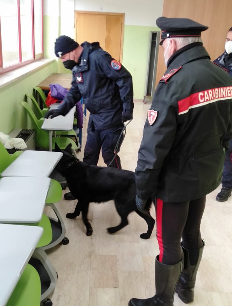 Con l’ausilio del cane Bagheera, un bellissimo german shepard di cinque anni “total-black” e protagonista attiva di numerose operazioni finalizzate al contrasto dello spaccio, sono stati controllati circa cento studenti ed ispezionati i vari locali dei plessi scolastici senza tuttavia rilevare alcuna presenza di sostanze stupefacenti.