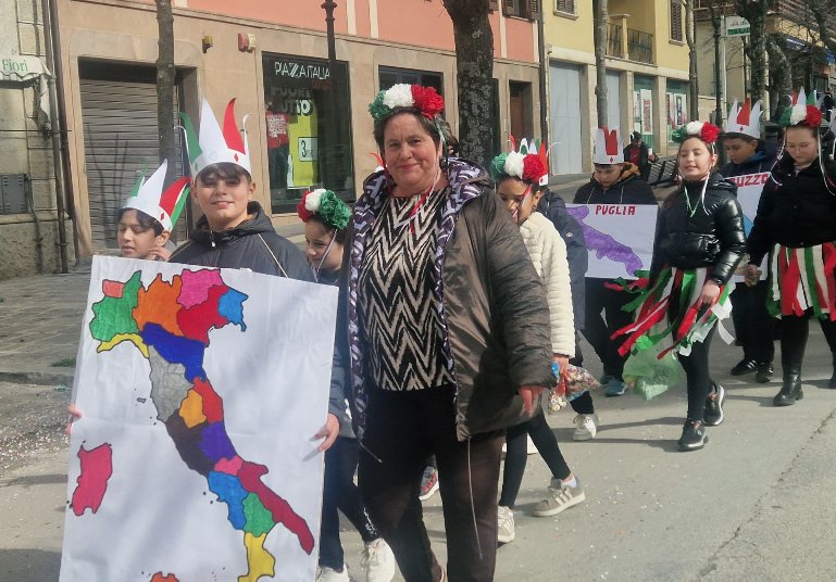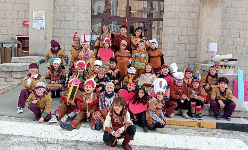 Dietro questa esplosione di gioia c’è il lavoro straordinario del corpo docente, che per settimane ha lavorato gomito a gomito con i piccoli studenti per dare vita a sei gruppi tematici davvero sorprendenti. C’era la Carica dei 101, un esercito di piccoli dalmata che ha fatto sciogliere il cuore di chiunque li guardasse. C’era il Puzzle dell’amicizia, con bambini trasformati in tessere colorate che insieme componevano un messaggio bellissimo: ognuno è unico, ma insieme siamo completi. E poi la Tribù degli Indiani Cucu, con tanto di copricapi piumati e tamburi che battevano al ritmo della festa, la Primavera e i Figli dei Fiori, che hanno portato una ventata di colore e natura in pieno febbraio, e infine le Regioni d’Italia, omaggio creativo alla bellezza del nostro Paese.