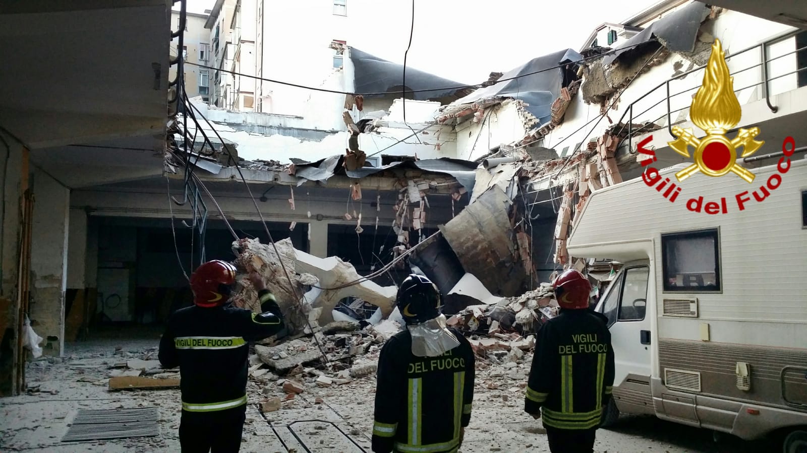 Crolla tetto del deposito mezzi Enel, Vigili del fuoco in azione