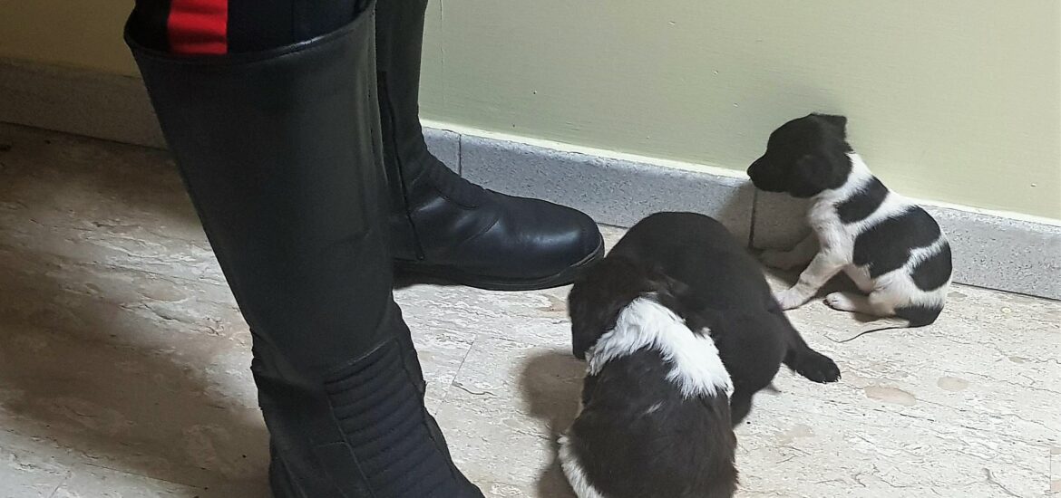 • Cuccioli abbandonati in uno scatolone a bordo strada, salvati dai Carabinieri