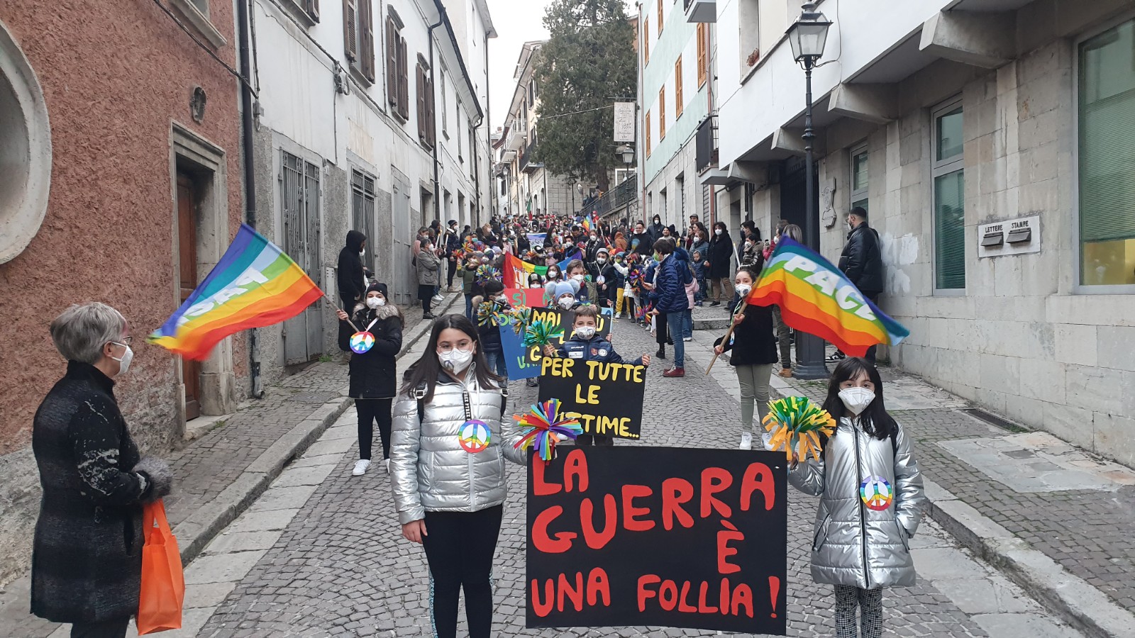 Centinaia i bambini, genitori, giovani e cittadini che hanno sfilato ieri lungo le strade di Agnone per ribadire no al conflitto in essere in Ucraina. L’evento, organizzato dal Comune, in collaborazione con numerose associazioni locali, è partito da piazza Plebiscito e si è concluso in piazza Unità d’Italia con canti, balli e testimonianze significative.
