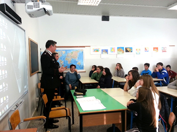 Il maggiore ha visto sconvolta la sua lezione dalla curiosità dei ragazzi: dopo una introduzione sul significato di legalità, cioè rispetto delle regole, quindi normalità, il maggiore aveva intenzione di far vedere e poi commentare un filmato in power-point, ma le domande continue e la curiosità dei ragazzi hanno assorbito tutto il tempo a disposizione.carabinieri a scuola