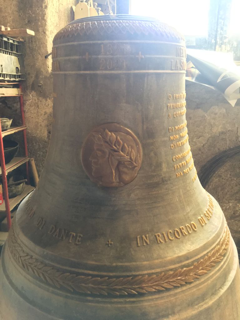 In occasione delle celebrazioni a 700 anni dalla morte di Dante, diverse le iniziative che hanno visto coinvolta la fonderia agnonese. L’artista Ettore Marinelli jr ha preso parte alla rassegna Narni Città Teatro. Ed ancora, il 20 giugno scorso, nel chiostro di Sant’Agostino, l’attore Stefano Sabelli ha recitato alcuni passi della Divina Commedia mentre un carillon di 29 campane della Marinelli è stato fatto riecheggiare dal maestro Giulio Costanzo. L’esecuzione resa ancor più straordinaria dalla performance di Ettore jr,che in poco più di un’ora ha plasmato un busto di Dante tratto da una grande campana di creta apparsa sulla scena.