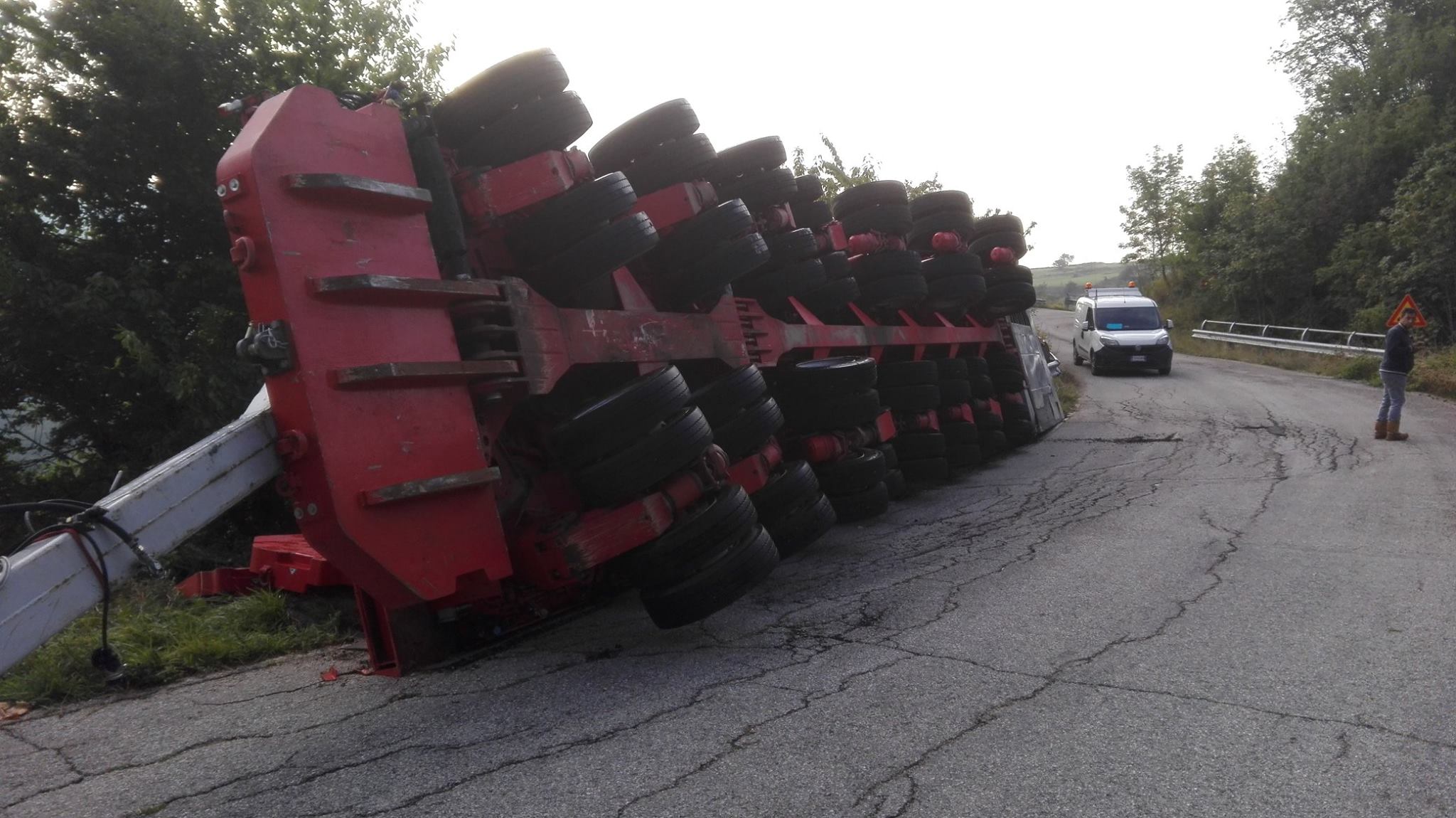 CASTIGLIONE MESSER MARINO – Un disastro sfiorato, perché di questo si tratta ed è difficile sostenere il contrario. Una pala eolica di 55 metri di lunghezza e ben 14 tonnellate di peso, trasportata in verticale da un tir, nella tarda serata di ieri si è inclinata ed è finita fuori strada ribaltando completamente il rimorchio che la sosteneva. L’incidente si è verificato nel pomeriggio di ieri al km 74 circa della provinciale tra Castiglione Messer Marino e Torrebruna. Il pesante mezzo con il trasporto eccezionale aveva appena lasciato l’abitato di Torrebruna e stava procedendo in direzione Castiglione. A circa quattro chilometri dal centro abitato due sospensioni del rimorchio hanno ceduto e la pala eolica si è inclinata pericolosamente verso valle. Data la lunghezza della pala l’inclinazione ha prodotto il ribaltamento della stessa che è finita quindi nella scarpata sottostante.
