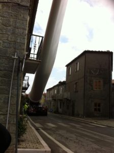 Il manufatto, occorre ricordarlo, pesa 14 tonnellate ed è lungo ben 55 metri. Una lama metallica che avrebbe sventrato e abbattuto, data la mole e il peso, anche gli edifici se il cedimento alle sospensioni si fosse verificato all’interno del centro abitato. Un episodio sul quale sono in corso accertamenti da parte delle autorità preposte e che comunque deve far riflettere anche i sindaci dei Comuni coinvolti dal passaggio delle mega strutture. Questi trasporti eccezionali sono effettuati in assoluta sicurezza? L’incidente di ieri pomeriggio dimostra purtroppo il contrario, o meglio evidenzia che nonostante la perizia degli addetti, che nessuno mette in dubbio, si possono comunque verificare episodi imprevisti e imprevedibile che mettono a repentaglio la sicurezza e la stessa vita dei residenti nei centri montani. Quattro chilometri più avanti e probabilmente, lo capirebbe anche un idiota, ci sarebbero stati morti, feriti e case abbattute.