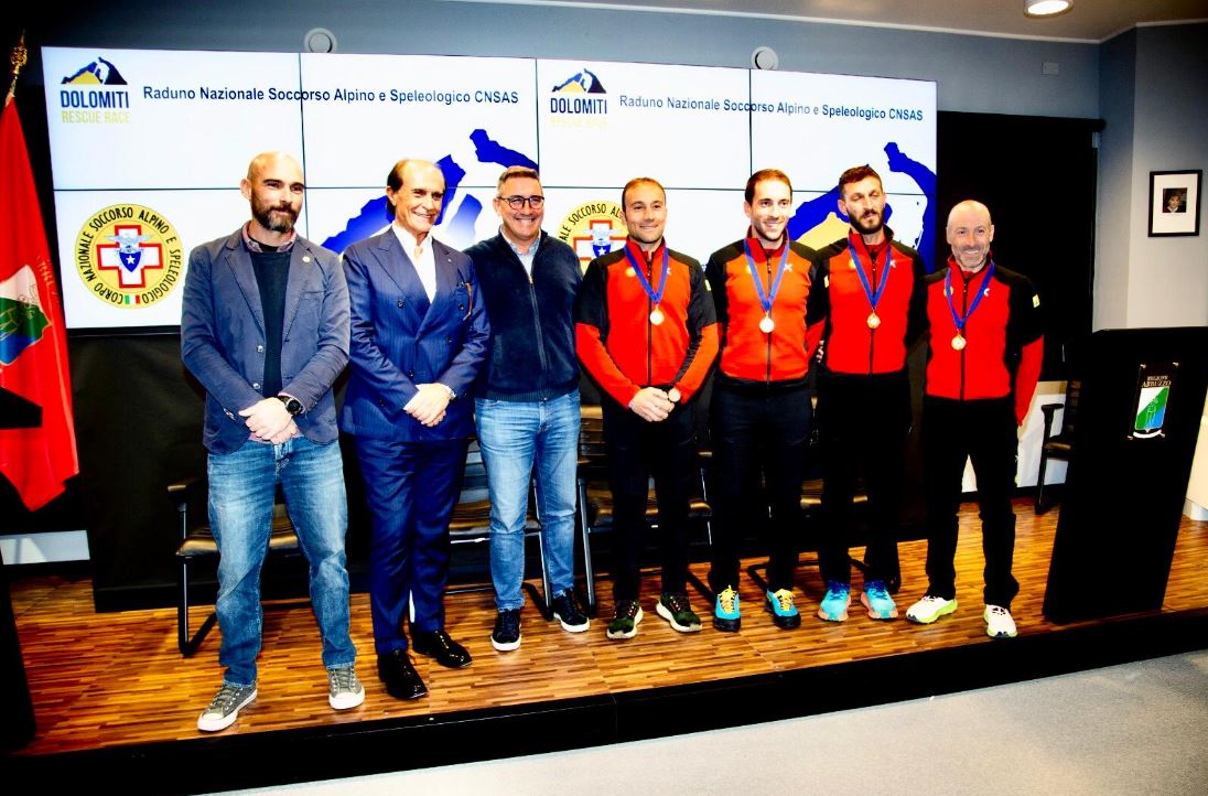 Gli atleti abruzzesi hanno conquistato il 14° posto (8° tra le squadre italiane) alla Dolomiti Rescue Race, la prestigiosa competizione internazionale giunta alla 13esima edizione, riservata ai servizi di soccorso alpino e speleologico. La gara ha visto la partecipazione di 76 squadre provenienti da tutto il mondo, riunite in una sfida di tecnica e resistenza tra le Dolomiti. Oggi, a testimonianza dell’importante risultato raggiunto e dell’impegno dei nostri soccorritori, il team è stato premiato dall’Assessore regionale allo Sport, Mario Quaglieri, accompagnati dal Presidente regionale del CNSAS (Corpo nazionale soccorso alpino e speleologico) Daniele Perilli e dal capo della Stazione di L’Aquila, Alessandro Marucci.