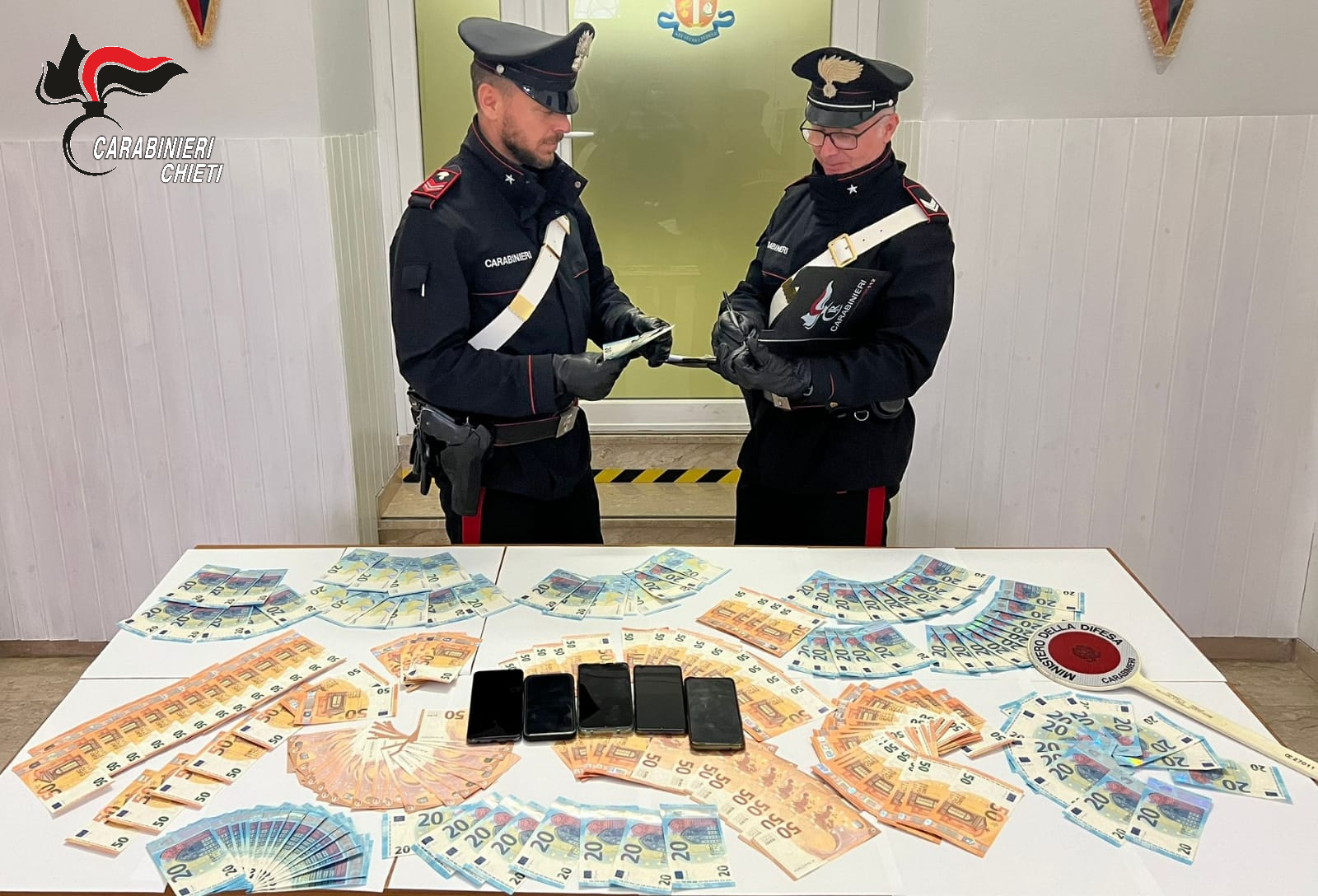 Nel corso di questi servizi i carabinieri di Orsogna hanno notato i movimenti sospetti dell’arrestata, già nota agli operanti, come detto, per i suoi precedenti, che si spostava tra i negozi del paese a bordo della sua utilitaria ed hanno quindi deciso di seguirla e poi di controllarla. Alla richiesta di esibire i documenti, l’interessata si è dimostrata subito alquanto preoccupata, cercando di nascondere una busta che teneva sul sedile dell’auto insieme alla borsa. I carabinieri l’hanno bloccata, recuperato il plico e scoperto che all’interno erano nascoste 200 banconote del taglio di 20 e 50 euro per un totale di circa settemila euro.