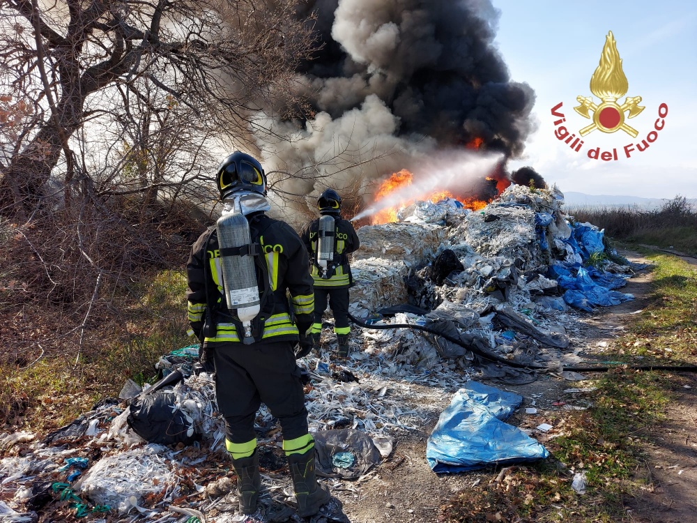 Ecoballe in fiamme: Vigili del fuoco domano il rogo, indagini dell’Arma
