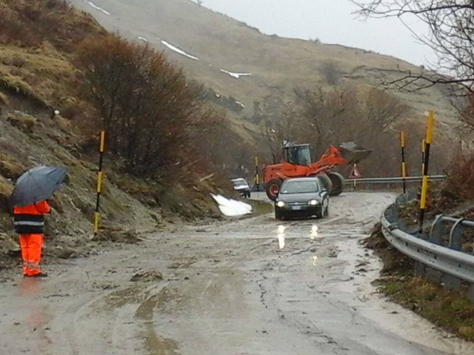 Il mezzo meccanico ha lavorato per ore al fine di canalizzare le acque accumulatesi che avevano provocato ripetuti smottamenti sul tratto Schiavi-Castiglione Messer Marino (vedi foto in basso, ndr).