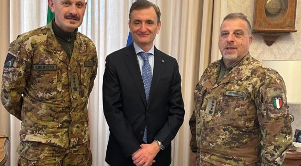In data odierna il Prefetto di Chieti, Gaetano Cupello, ha ricevuto presso la Prefettura di Chieti il Colonnello Alessandro Poli, Comandante designato del Comando Militare Esercito Abruzzo e Molise e il Colonnello Marco Iovinelli, Comandante cedente, accompagnati dal Capo di Stato Maggiore del CME, Colonello Romeo Leonardi e dal Tenente Colonnello Adolfo Felicissimo, Capo dell’Ufficio Documentale di Chieti.