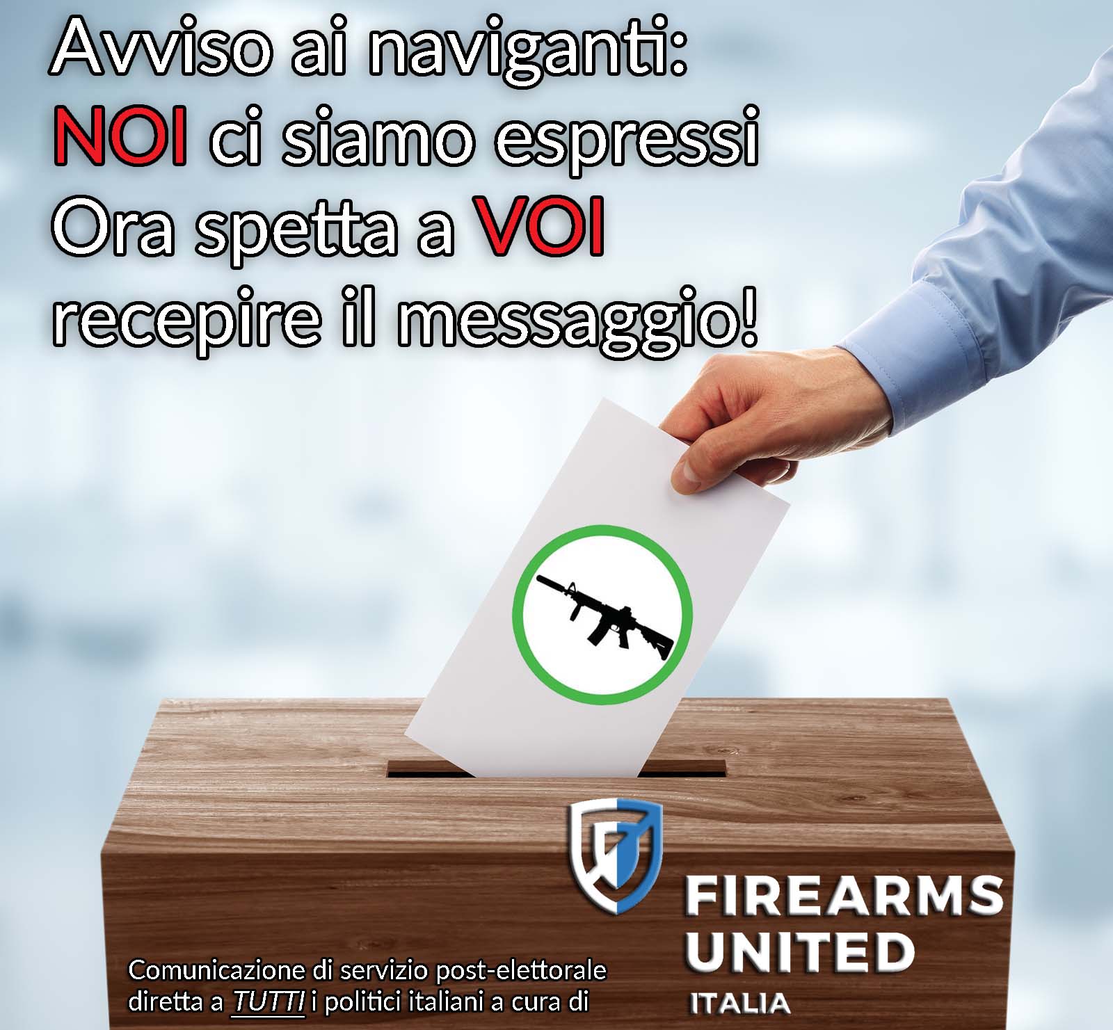 Pubblichiamo, di seguito, una nota di Firearms United – Italia a commento delle elezioni politiche.