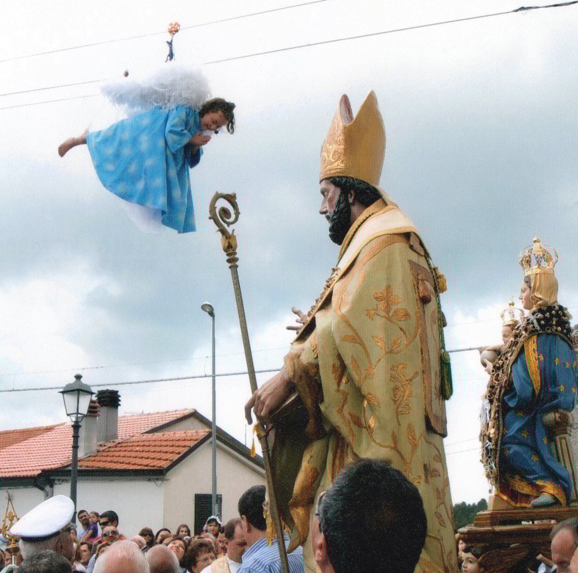 Il “Volo dell’Angelo” è una sacra rappresentazione, unica del suo genere rimasta nella regione, e tra le pochissime ancora resistenti nel resto della Penisola, tutte concentrate nell’Italia meridionale, intesa a rappresentare il biblico episodio dell’Annunciazione. L’Angelo è impersonato da una bambina, di età compresa tra i 4 e i 6 anni, che effettua il cosiddetto’ volo’, ma che in realtà è una traversata fra la facciata della chiesa e una casa di fronte. L’angioletto avanza su un cavo di acciaio teso, lungo alcune decine di metri e posto a pochi metri dal suolo, attraverso un sistema di carrucole che vi scorrono sopra, al quale la bambina è assicurata al busto e alle caviglie con un congegno che inizialmente consisteva in una cintura di cuoio rivestita di velluto, ma ora sostituita con un’imbracatura del tipo di quelle usate in alpinismo.