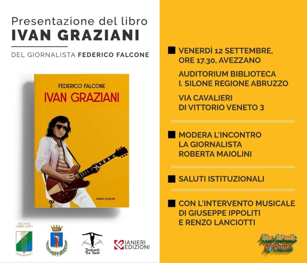 Dopo l’anteprima nazionale al “Maledette Malelingue” Festival di Novafeltria e la prima presentazione del tour autunnale al Premio Pigro di Teramo per gli ottant’anni dalla sua nascita, “Ivan Graziani” (Ianieri edizioni), il nuovo libro di Federico Falcone, sarà presentato ad Avezzano (Aq) venerdì 12 settembre alle 17.30 nell’Auditorium della Biblioteca ‘Ignazio Silone’ di via Cavalieri Di Vittorio Veneto 3; modera la giornalista Roberta Maiolini. Sono previsti interventi musicali di Giuseppe Ippoliti e Renzo Lanciotti.