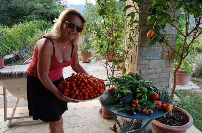 Allora, di fronte al nulla istituzionale, l’Università delle Generazioni intende ancora una volta celebrare a modo suo in Alto Molise la Festa del Lavoro e dei Lavoratori e la Festa dell’Europa, continuando ad incontrare i veri protagonisti di queste due giornate ormai dimenticate o snobbate. Infatti, negli anni scorsi l’associazione culturale agnonese ha sempre evidenziato figure emblematiche delle due imminenti celebrazioni. La più memorabile di tutte queste figure è stata nel 1994 quella del pastore di pecore Ysmen Pireci, musulmano del Kossovo, un raffinato poeta ed intellettuale esule dall’ex-Jugoslavia allora in piena guerra civile. Ne è nato pure il libro di poesie “Il villaggio senza nome” ovvero il villaggio formato da tutti gli immigrati i quali, non avendo un centro di aggregazione, non avevano né nome né identità sociale in Alto Molise. Eppure sono davvero tanti i lavoratori esteri qui da noi facendo così diventare il nostro territorio inter-etnico, inter-culturale e inter-religioso (a quando i minareti accanto ai campanili per la fraterna religione universale che unisca tutti nella “Civiltà dell’Amore”?). Adesso, per questo anno 2014 l’incontro-simbolo del Primo e del Nove Maggio è Johannis Van Blijderveen (detto Jop per gli amici) un cinquantottene olandese ex direttore di banca che ha deciso di vivere buona parte dell’anno a Castelverrino, forse il più piccolo comune d’Italia con i suoi 50 abitanti effettivi (127 circa all’anagrafe), al pari di altre 4 famiglie olandesi per un totale di 22 persone ovvero il 18% sui residenti e addirittura il 40% su chi abita questo graziosissimo paese dell’Alto Molise. La moglie Leontine Buddeneijer e i loro tre figli sono entusiasti del posto e ci portano pure amici e parenti. (nella foto in alto il suo arrivo in trattore a Castelverrino, mentre qui accanto la moglie con i prodotti dell’orto, ndr).