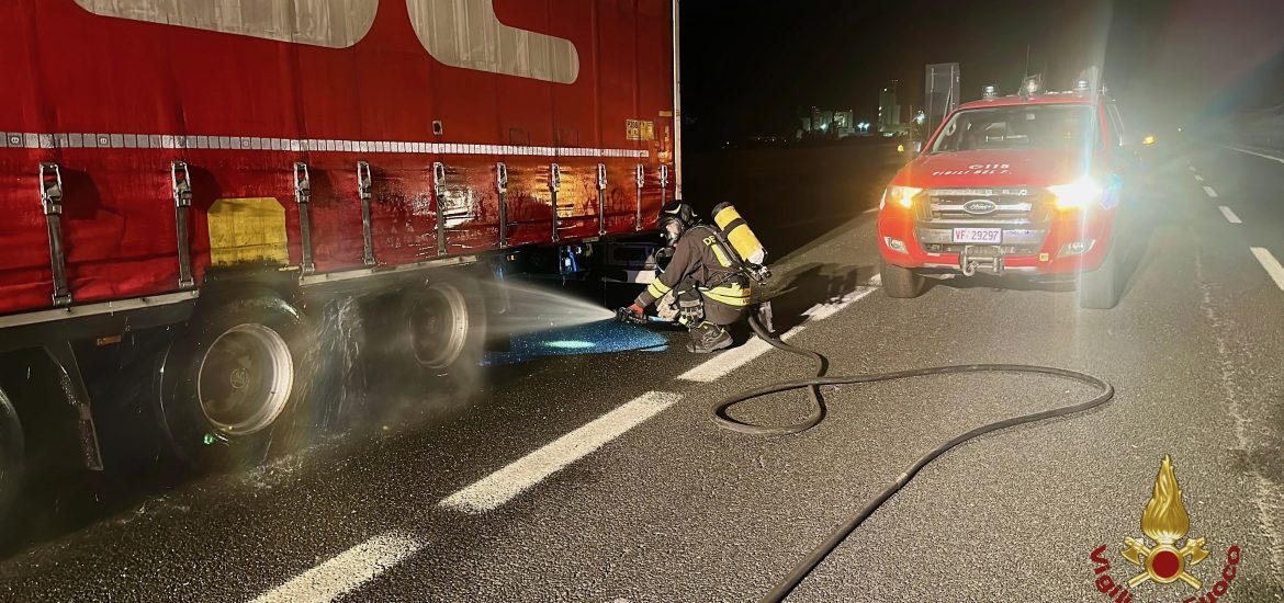 Le fiamme, che hanno interessato le ruote del semirimorchio, sono state prontamente notate dall’autista, il quale ha arrestato il mezzo e provveduto ad una prima azione di contenimento, riuscendo a limitare il propagarsi del fuoco fino all’arrivo dei soccorsi.