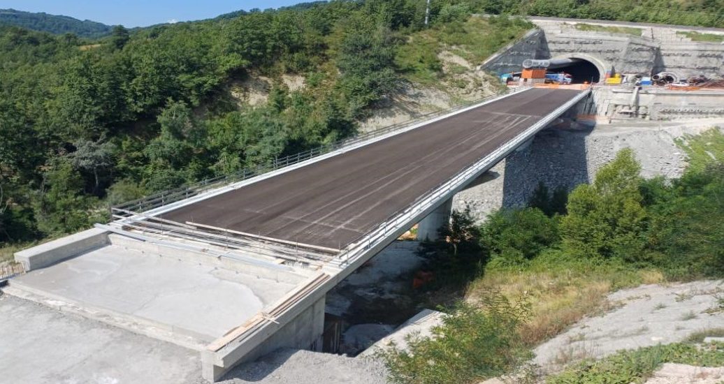 I lavori principali in corso riguardano il completamento della strada con la costruzione di una galleria, cinque viadotti e opere di stabilizzazione e drenaggio dei versanti. L’intervento si estende per un totale di 5,7 chilometri, di cui 2465 metri di galleria naturale già quasi totalmente scavata. Resta da scavare per l’abbattimento dell’ultimo diaframma 390 metri.