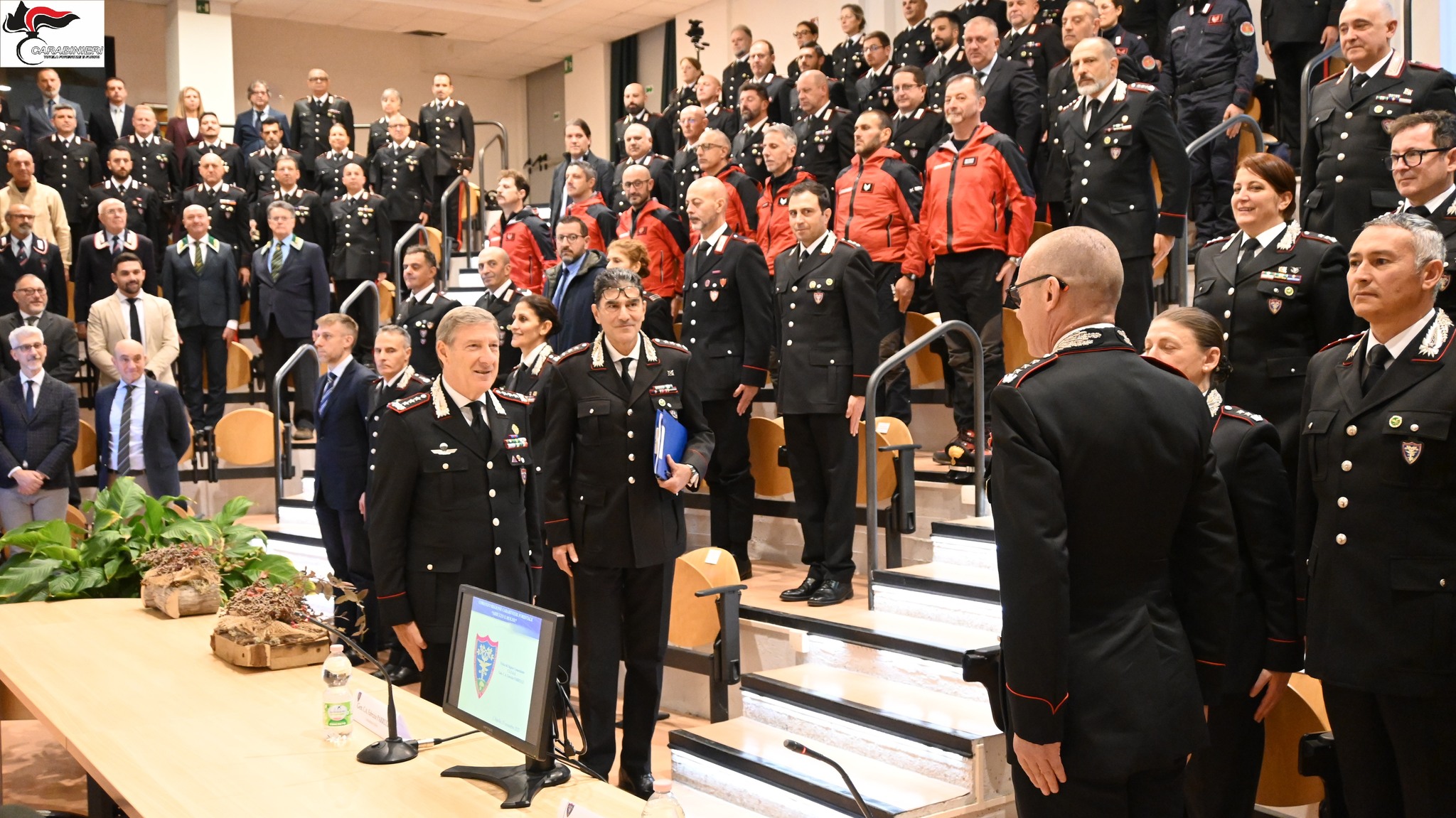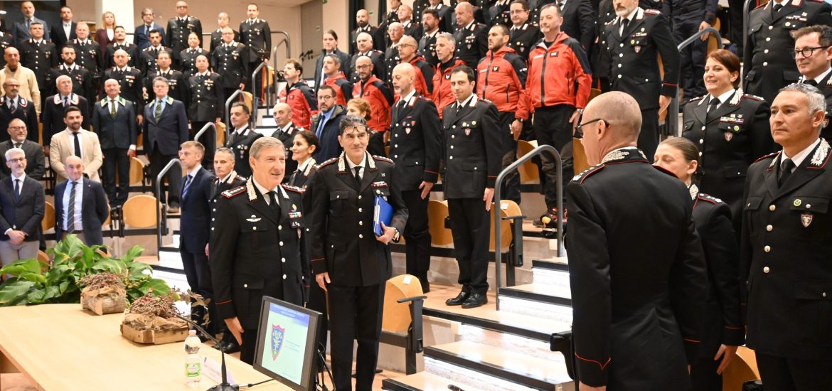 Nei locali dell’Aula Magna “Luigi Giugno”, accompagnato dal Colonnello Giuseppe Lopez, Comandante della Regione Carabinieri Forestale “Abruzzo e Molise”, e dal Tenente Colonnello Irene Sebastiani, Capo Ufficio Comando, il Generale Parrulli, alla presenza del Cappellano Militare, Don Claudio Recchiuti, ha salutato gli Ufficiali comandanti e addetti dei reparti abruzzesi e molisani delle Specialità Forestale (Gruppi L’Aquila, Chieti, Pescara, Teramo, Campobasso, Isernia – Reparti Parco Nazionale Maiella, Abruzzo Lazio e Molise, Gran Sasso e Monti della Laga – Reparti Biodiversità L’Aquila, Castel di Sangro, Pescara, Isernia), Ambientale (Nuclei Operativo Ecologico Campobasso e Pescara) e Agroalimentare (Nucleo Tutela Agroalimentare Avezzano), nonché una rappresentanza di comandanti e addetti dei Nuclei Carabinieri Forestali e Parco, i rappresentanti delle Associazioni Professionali a Carattere Sindacale e una delegazione dell’Associazione Nazionale Carabinieri e dell’Associazione Nazionale Forestale.