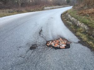 FOTO NEWS – Buche sulle provinciali riempite con i calcinacci.
