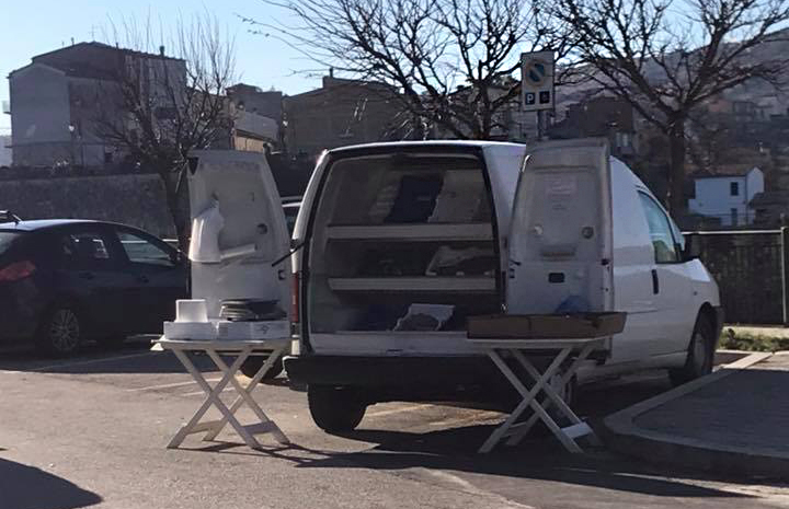 La segnalazione arriva da Trivento e la foto è stata scattata questa mattina in piazza Fontana. Il furgone del pesce è fermo proprio sul parcheggio riservato ai disabili.