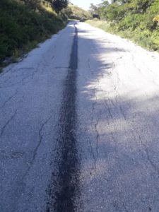 Perché spendere soldi per l’acquisto della vernice quando la segnaletica orizzontale può essere realizzata a costo zero per l’ente, sfruttando qualche sfortunato utente della strada? E’ quello che devono aver pensato nelle sacre stanze della Provincia di Isernia rispetto alla situazione viabilità nell’Alto Molise. E così sul tracciato della vecchia Istonia, la statale 86, che da Castiglione Messer Marino (CH) porta verso l’Alto Molise, sono spuntate delle belle strisce di mezzeria, ma non realizzate con la canonica vernice bianca, bensì con una colata d’olio fuoriuscita dal moto di qualche autovettura in transito. La classica coppa dell’olio andata in frantumi.