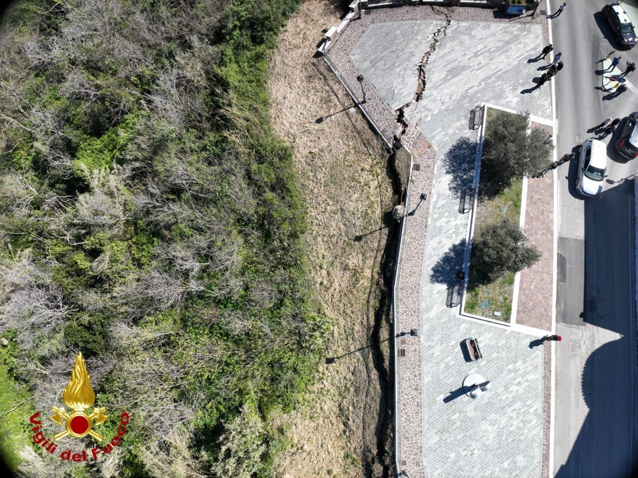 Prosegue il monitoraggio dell’area interessata dalla frana a Petacciato, in provincia di Campobasso, anche con l’impiego di droni del Corpo nazionale dei vigili del fuoco.