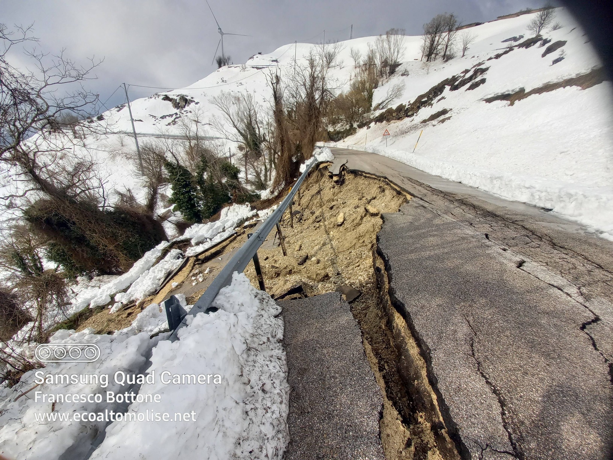 Una frana ha inghiottito buona parte della carreggiata sulla provinciale tra Schiavi di Abruzzo e Castiglione Messer Marino. Il cedimento a poche centinaia di metri dall’imbocco, dopo lo svincolo per Torrebruna-Monte Pizzuto.