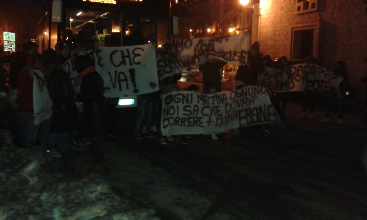 Una trentina di studenti in piazza, questa mattina, al freddo dell’Alto Vastese, ma scaldati dalla passione per la loro terra, per difendere il diritto allo studio, alla mobilità, a poter raggiungere un istituto scolastico senza dover fare il giro del mondo.