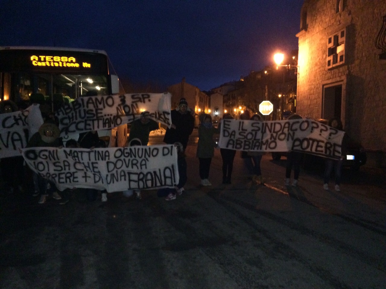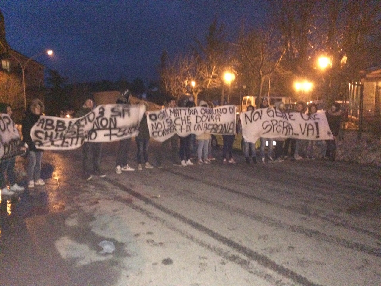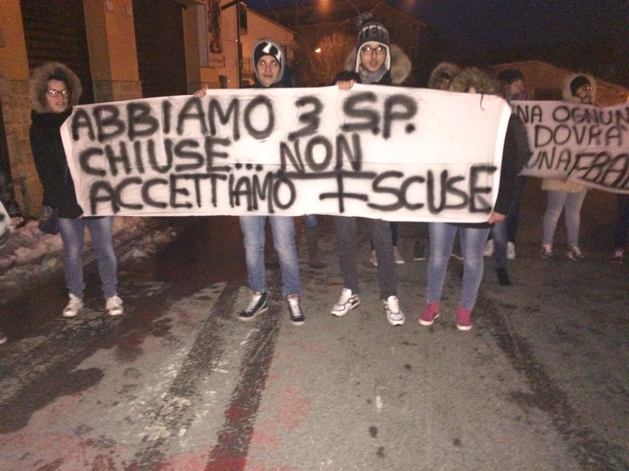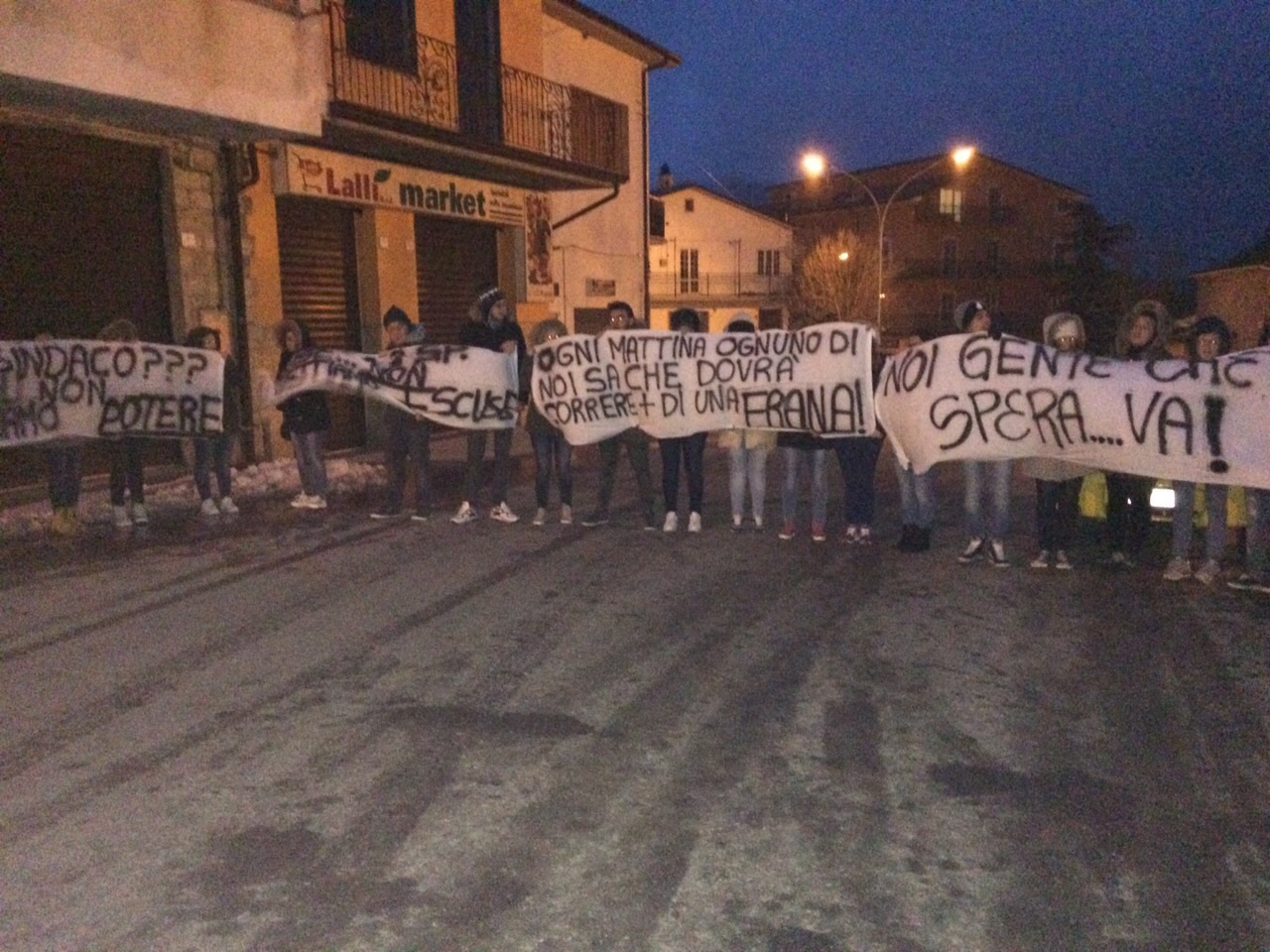 Protagonisti della protesta mattiniera gli oltre trenta studenti pendolari che ogni mattina, da Castiglione Messer Marino, prendono un autobus per recarsi ad Atessa, sede delle scuole superiori. In condizioni normali, ammesso che ne esistano nell’Alto Vastese, il mezzo impiega un’ora circa per raggiungere gli istituti scolastici. Oggi, con le frane ovunque e tre provinciali chiuse, in particolare quella tra Castiglione Messer Marino e Montazzoli, l’autobus di linea deve percorrere un giro assurdo passando per il Molise per arrivare, dopo un’ora e mezza abbondante, nella città di Atessa.