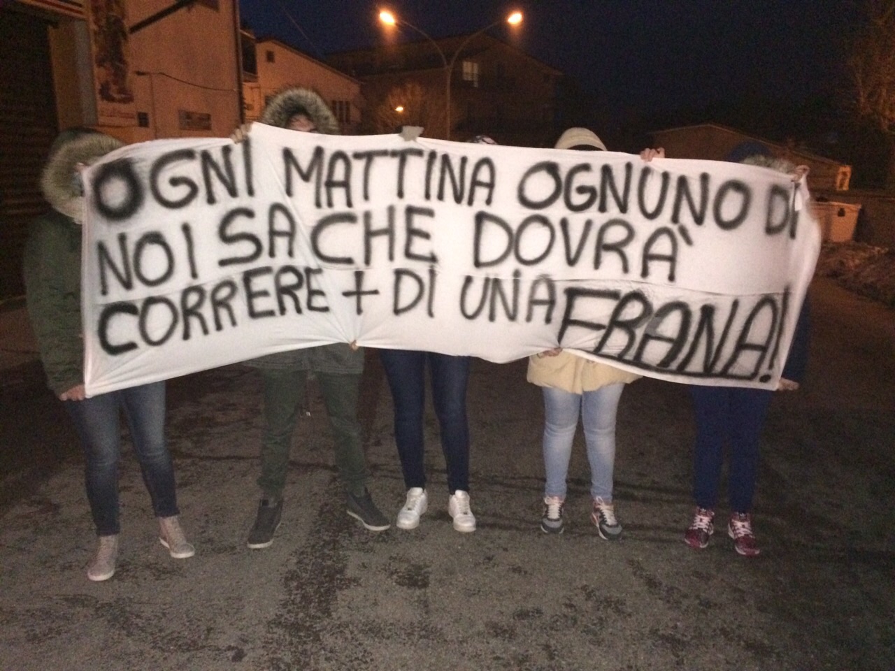 «Ogni mattina ognuno di noi sa che dovrà correre più di una frana». E’ lo slogan messo nero su bianco su uno striscione, uno dei tanti.